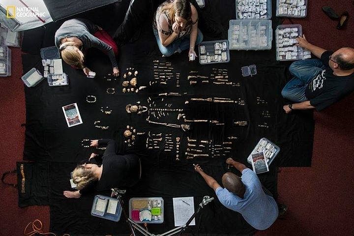 Sorting the remarkably numerous skeletal elements of Homo naledi. A valuable resource in the public understanding of human evolution. Image courtesy of National Geographic.