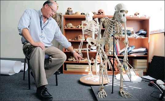 Pointing out the differences in the feet of Australopithecus sediba, and other species of primates