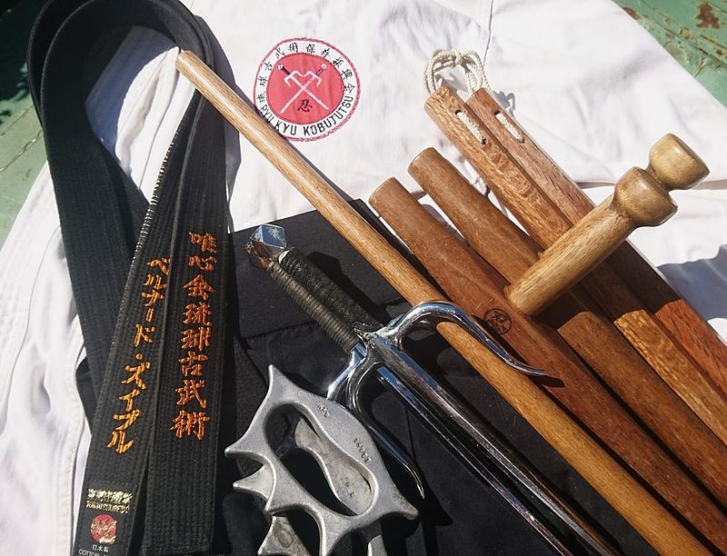 Left to right - Tekko, Sai, Bo (Kon), Tonfa and Nunchaku